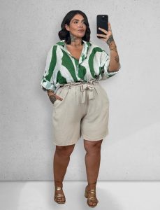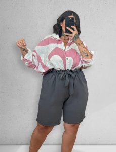 Bermuda cintura alta fruncida con cinturón a juego y bolsillos laterales. Tejido cómodo y ligero, ideal para el calor. Una prenda versátil y favorecedora para looks relajados o más arreglados.