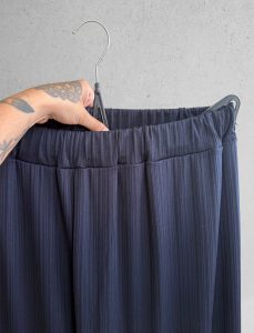 Pantalón con tejido de textura ligera, cintura elástica y corte ancho. Elegante, cómodo y con ese toque rústico que lo hace especial. Perfecto para looks relajados pero con rollazo.